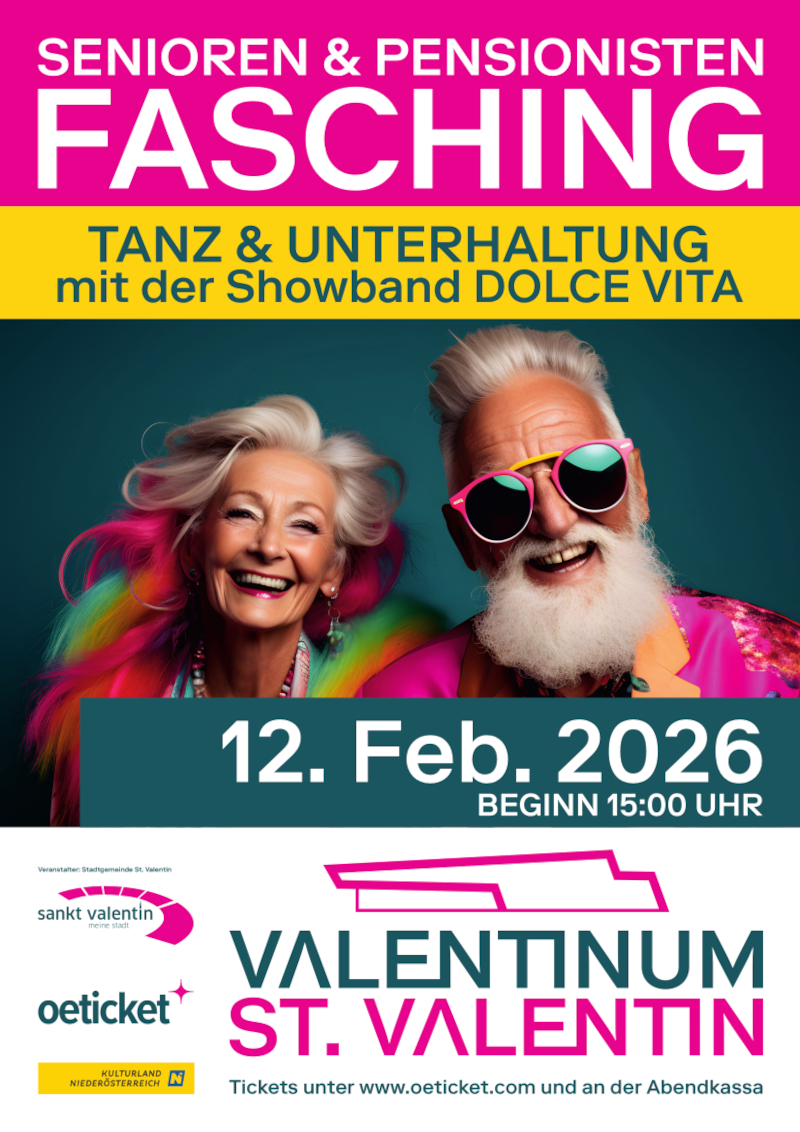 Karten erhältlich über Oeticket, am Stadtamt Sankt Valentin und an der Tageskassa.
